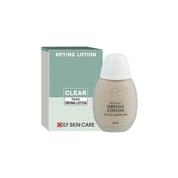 подсушивающим лосьоном A-Clear Herbal Drying Lotion. Благодаря входящим в его состав солям Мертвого моря и цинку, препарат способствует бережному подсушиванию жирной кожи и предотвращает распространение вредных микроорганизмов. A-Clear Herbal Drying Lotion не пересушивает проблемные участки. Растительный лосьон можно применять для лечения пустул, образовавшихся под воздействием жаркого влажного воздуха или стресса как у взрослых, так и у детей. Лосьон бывает белым и матирующим.