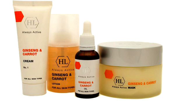 А вот специалисты бренда Холи Ленд разработали целую линию препаратов, полезное действие которых основано на экстрактов женьшеня и морковного масла. Линия GINSENG & CARROT включает в себя увлажняющий лосьон Ginseng and Carrot Lotion, увлажняющий крем №1 Ginseng & Carrot Cream №1 и масляный концентрат Ginseng and Carrot Oil.