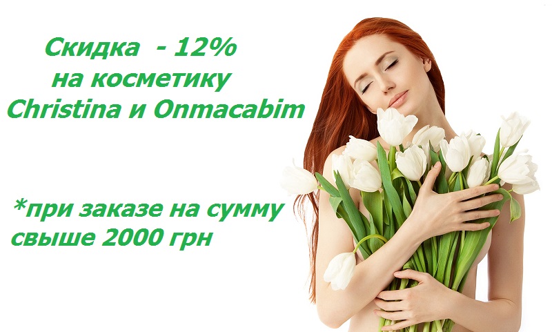 С 1 по 10 марта в нашем интернет магазине проходит акция. При покупке косметики Christina и Onmacabim на сумму свыше 2000 грн., вы получаете скидку 12% на заказанный Вами товар.