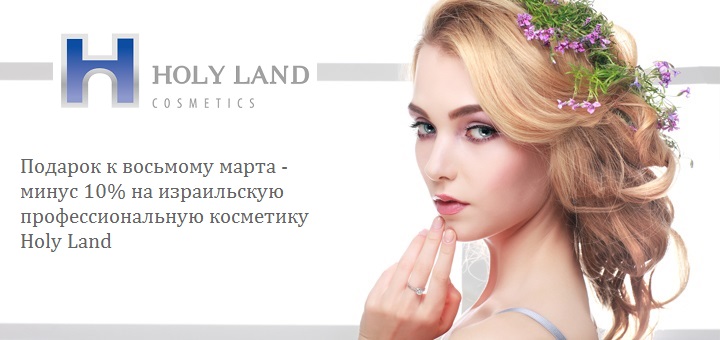 При покупке профессиональной косметики Holy Land на сумму от 1500 грн. в период с 01.03 по 08.03 вы получаете скидку -10% на всю продукцию компании.