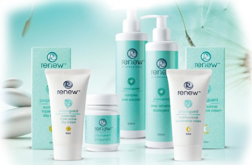 Торгова марка Renew також не залишилася осторонь. Її бестселером стала серія Propioguard - високоефективна лінія препаратів для проблемної шкіри з акне. Практично у всіх засобах серії в складі присутня саліцилова кислота. Особливою популярністю серед прихильниць косметики Ренью користується комплексний розчин для пілінгу для всіх типів шкіри Propioguard Complex Peel Solution, багатофункціональний нічний крем Propioguard Multifunctional Accelerative Cream і зволожуючий денний крем потрійної дії Propioguard Sunscreen Triple Active Day Cream. Відносно недавно компанія випустила тональний крем Propioguard MAKE-UP TREATMENT CREAM, який не тільки добре маскує недоліки, а й завдяки доданим до його складу корисним компонентам (в тому числі і саліцилові кислоті), нормалізує водний баланс шкіри, зменшує вироблення себума, має протизапальну дію.