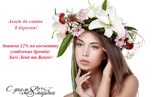 Акція до 8 березня! Знижка 12% на косметику улюблених брендів!