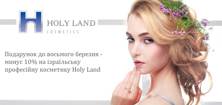 При покупці професійної косметики Holy Land на суму від 1500 грн. в період з 01.03 по 08.03 ви отримуєте знижку -10% на всю продукцію компанії.